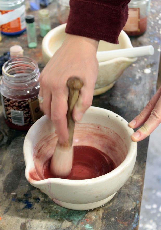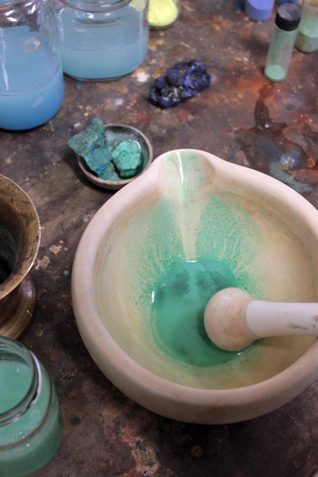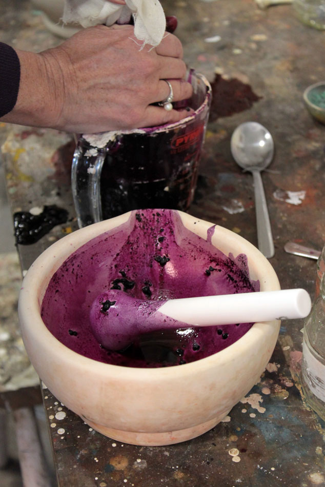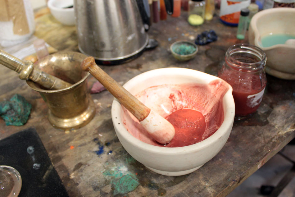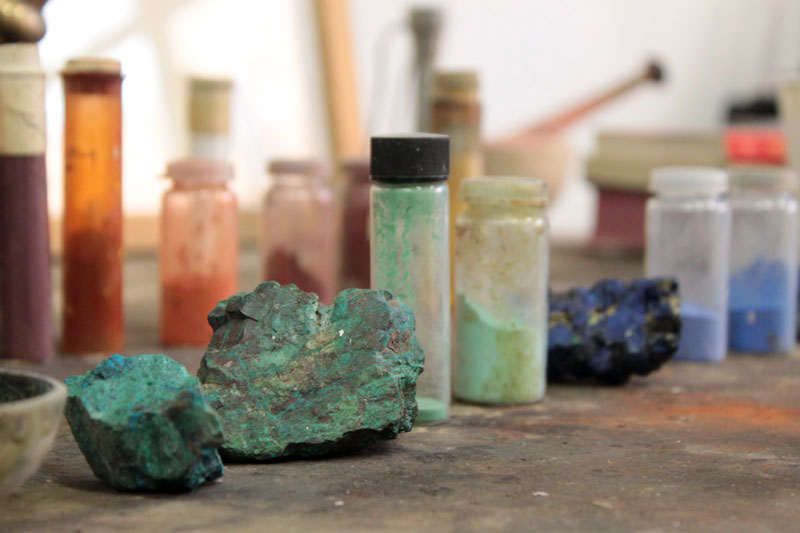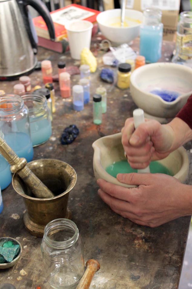 I have had the most transformative week, a true revelation, learning to make colors from natural raw materials under the guidance of David Cranswick. Here’s a flying tour of the genesis of true artist pigments.