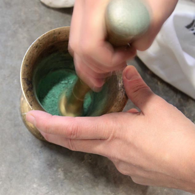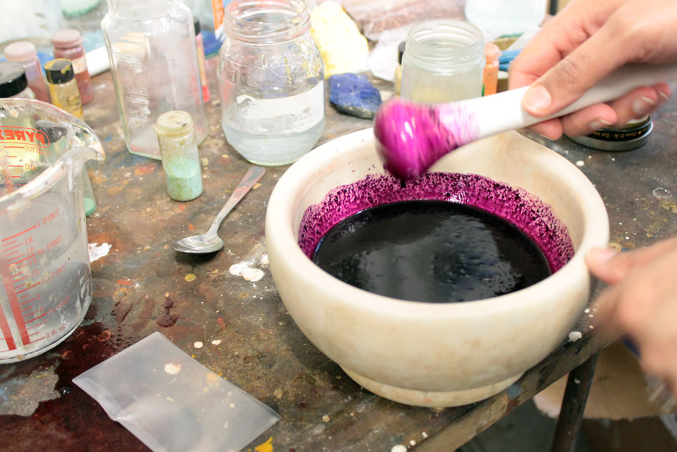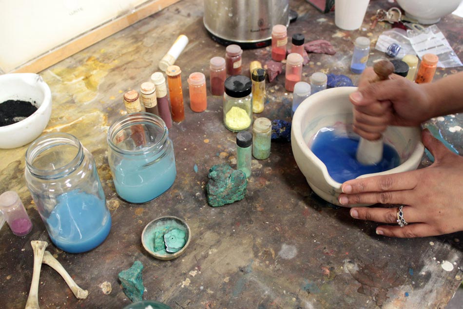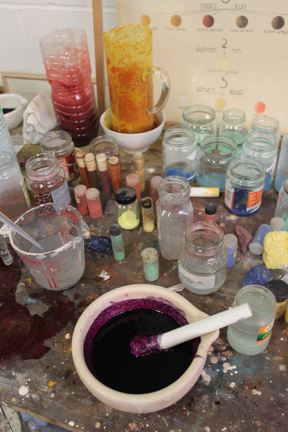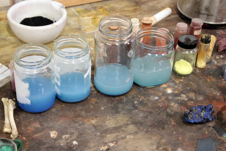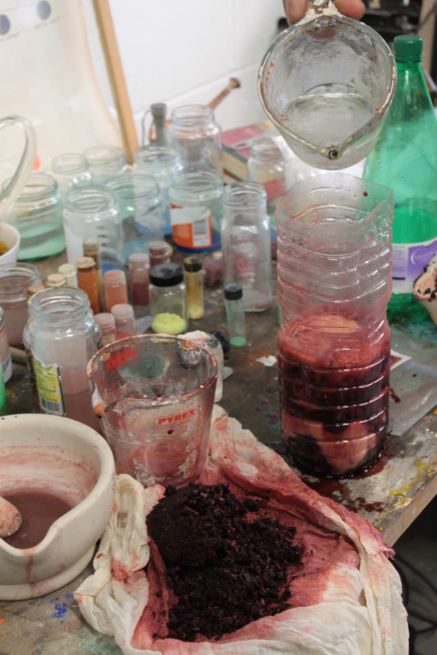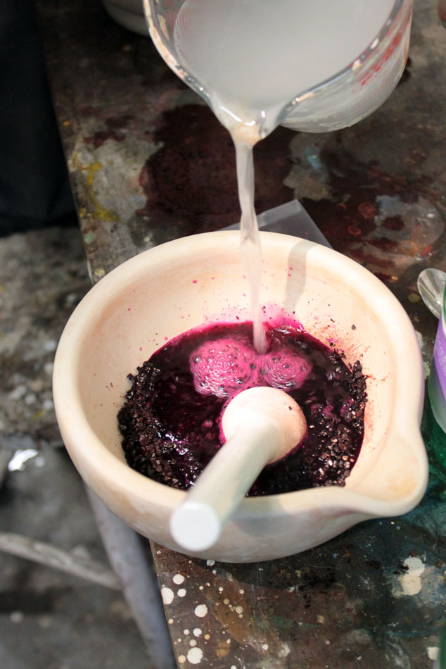 I have had the most transformative week, a true revelation, learning to make colors from natural raw materials under the guidance of David Cranswick. Here’s a flying tour of the genesis of true artist pigments.