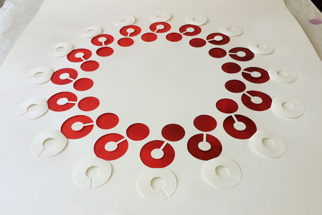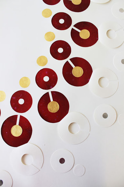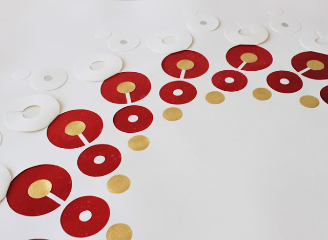 In line with the above quote, this piece is conceived to reveal the intense inner world underlying the white paper, rich with invisible constellations that reveal themselves suddenly in iridescence when seen from the right angle. Meanwhile, the removed paper is folded over and pasted to echo the inner ring on a different level: less colourful but more corporeal: a statement on the contrast between what we see in the world of the imagination, and what we can bring through.