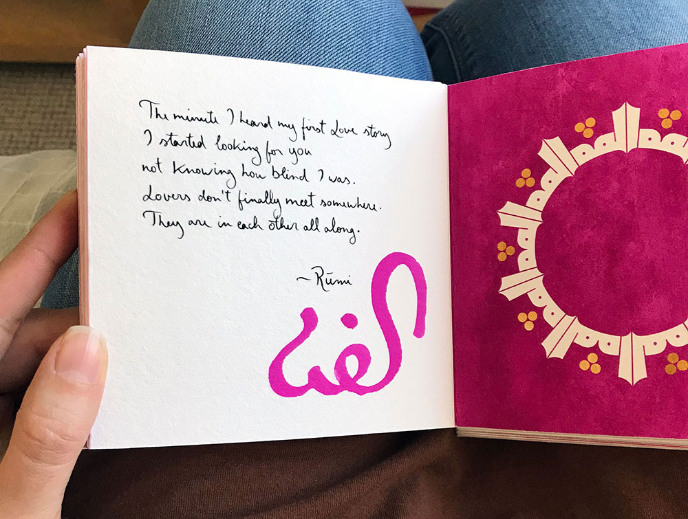 Art, calligraphy and poetry bound together to revel in some of the many Arabic words that express love in all its hues.