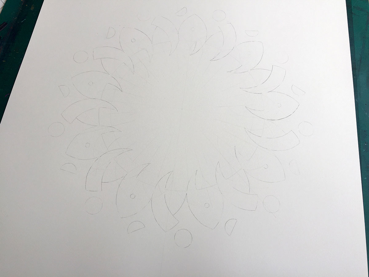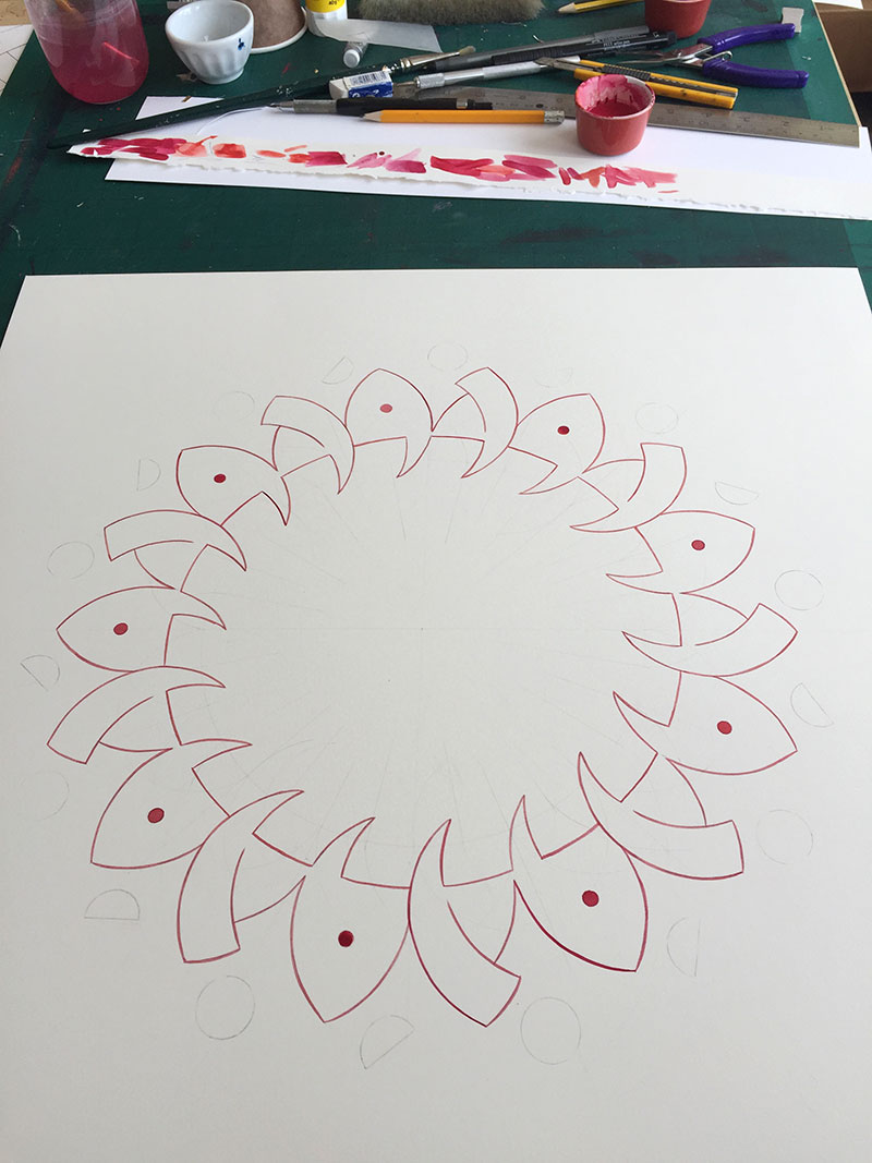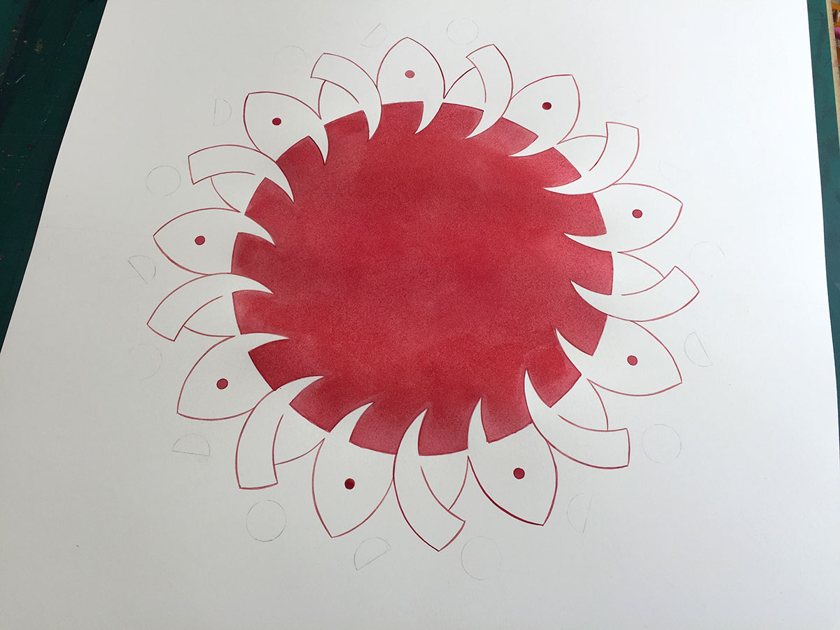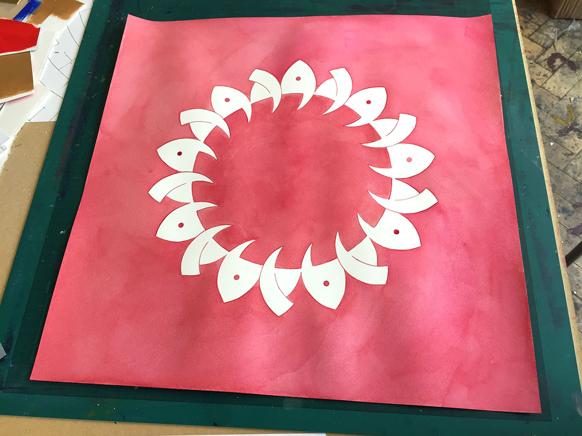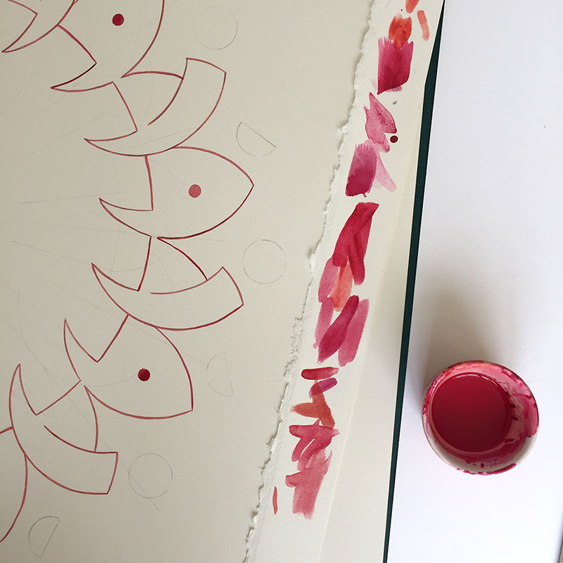 Watercolour and metal leaf on Saunders Waterford paper, 50x50 cm.