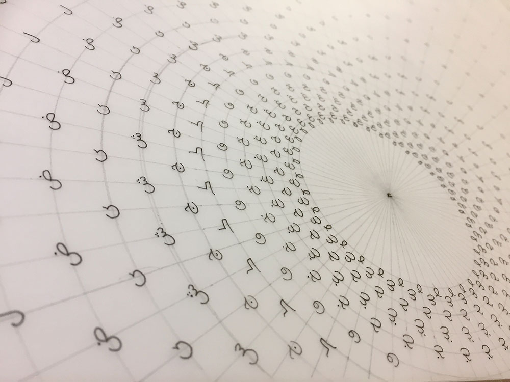It so happens that the divine Breath is linked to the letters of the alphabet: they are said to be none other than “divine creation revealed in human speech”. This refers specifically to the uttered letters rather than the written: the sounds, carried by human breath, reflecting the divine Breath on the human level. The phonetic sequence of the letters differs from both the numeric sequence (abjad hawwaz) and graphic sequence (alif bâ tâ thâ): It proceeds from hâ’ ه, the innermost sound, to wâw و, the outermost sound. The progression, reported by Ibn Arabi, follows very accurately the origin of each sound, from deep within the chest to the tip of the lips. The letter alif is not present here, having no existence as a sound, but is represented by its “other half” the hamza, glottal stop, itself not considered a sound, but the preliminary to sound, the moment between silence and speech.