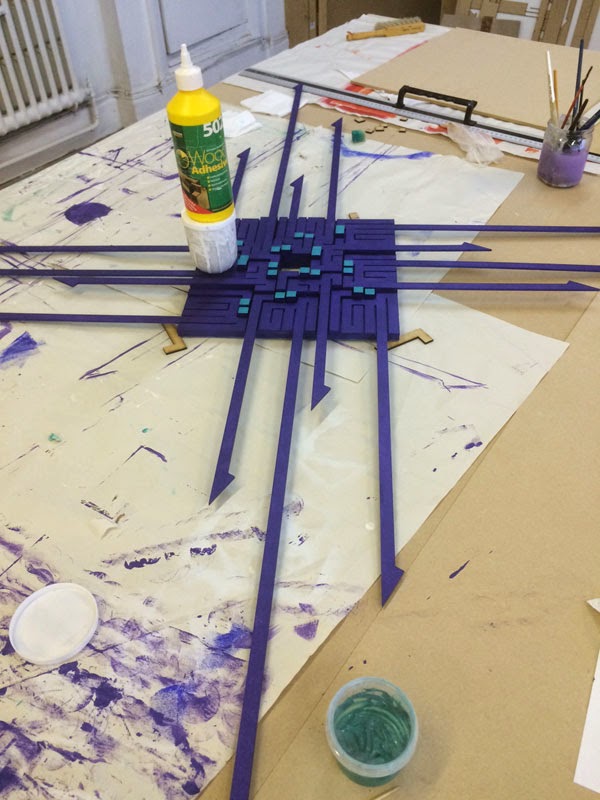I would normally never have dreamed of putting green and purple together, yet that is exactly what happened: I had a dream of electric blue-green on iridescent purple, and I used them here. They are pearlescent so their appearance changes with the light.
