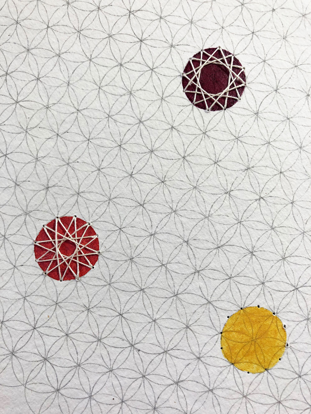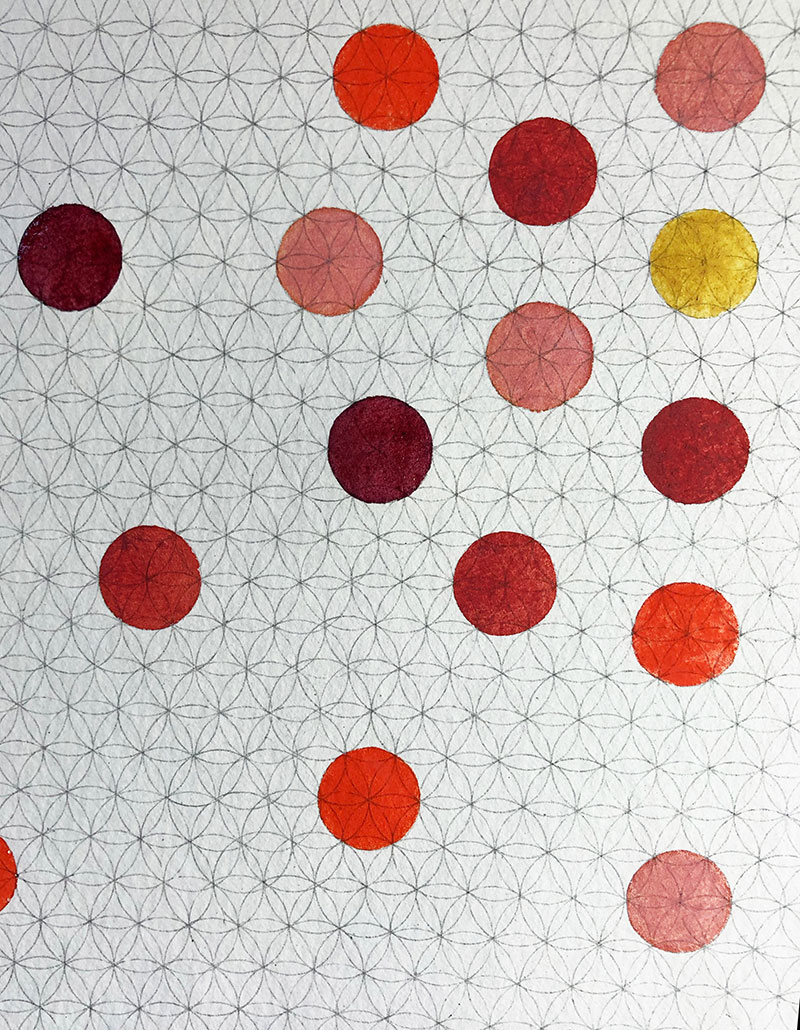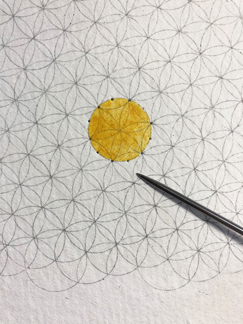 The pigments I used were those I had on hand at the time, as I was preparing a book on inks and paints in the Abbasid-era Middle-East: cinnabar, red lead, orpiment. The rose colour (cinnabar + lead white) and purple (cinnabar + lake dye) were prepared according to the medieval recipes I was reconstructing.