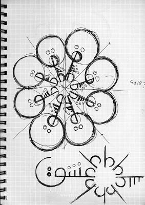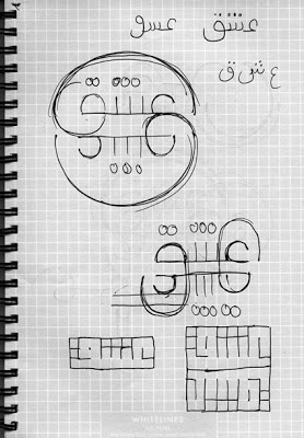 The composition was planned so the tails of the ق would form a stylized rose, as that flower is considered to be a symbol of divine love. The spiraling motion pulls in the viewer as surely as the lover is absorbed.