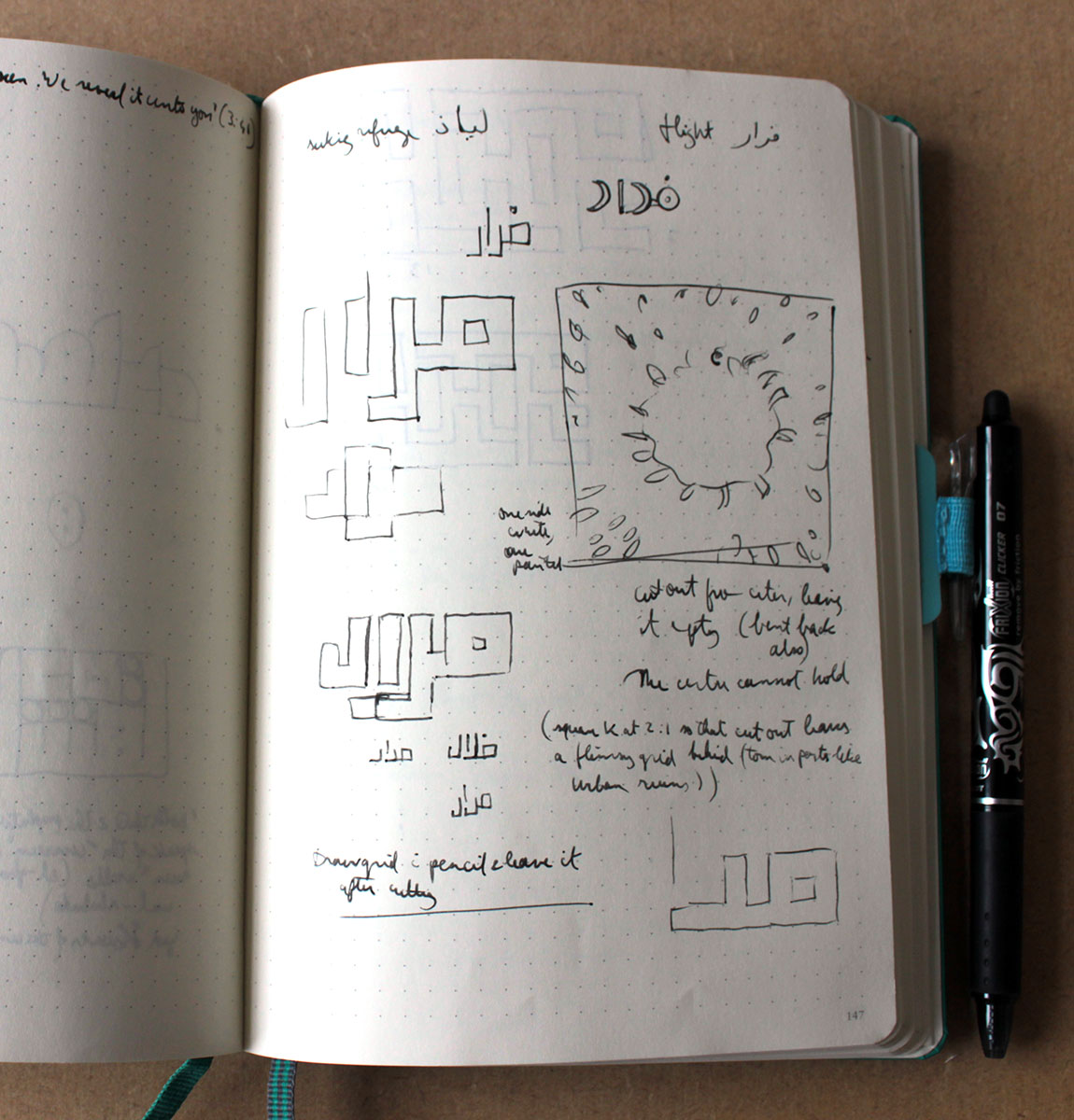 Among the different Arabic words expressing Flight and Refuge, I chose Firâr and Liyâdh . The reason for this was that these are listed as the names of two stations on the Sufi path, and although in that context the flight is to and the refuge in God, I was keen to use this link.