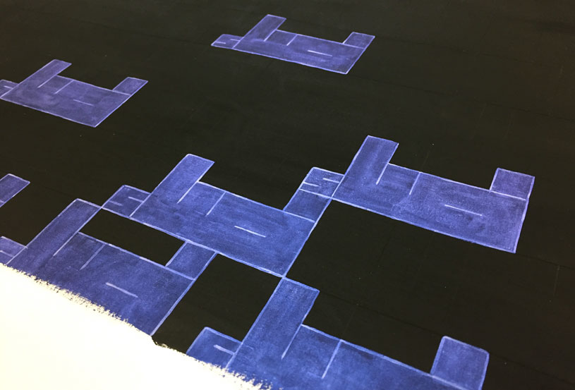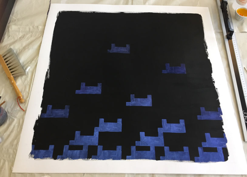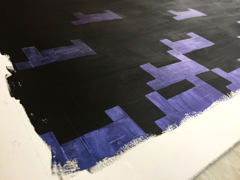 Ironically, in the finished result, the small areas of light have much more presence than the mass of darkness, so that another layer of meaning was only revealed upon completion: the fact it takes very little light to dispel even the deepest gloom.