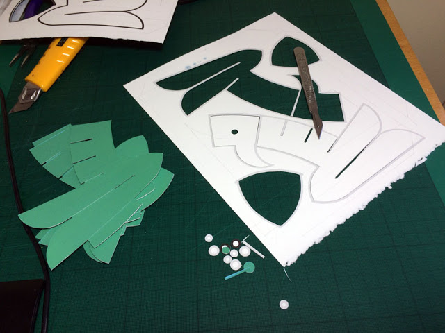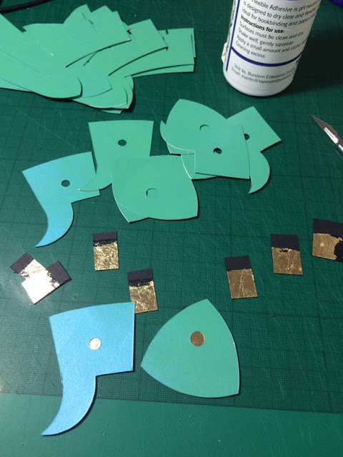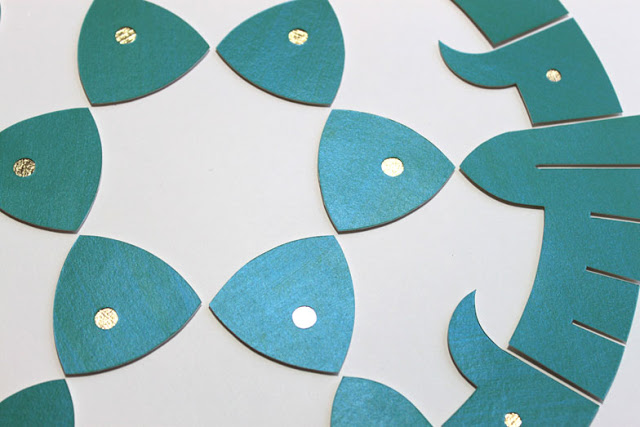 The soft green of the design is glazed with an iridescent blue, so that the colour’s appearance shifts in the light between green and blue.