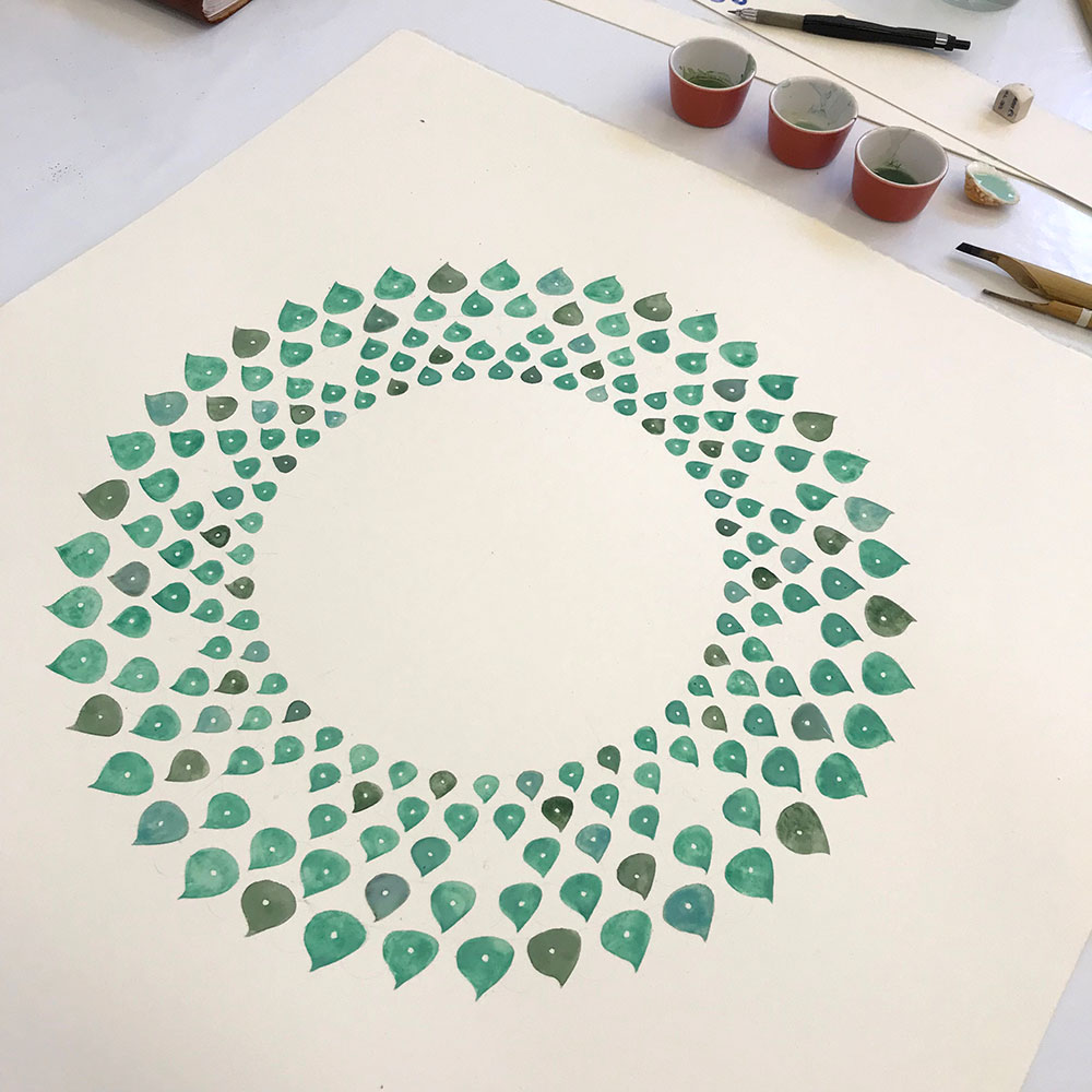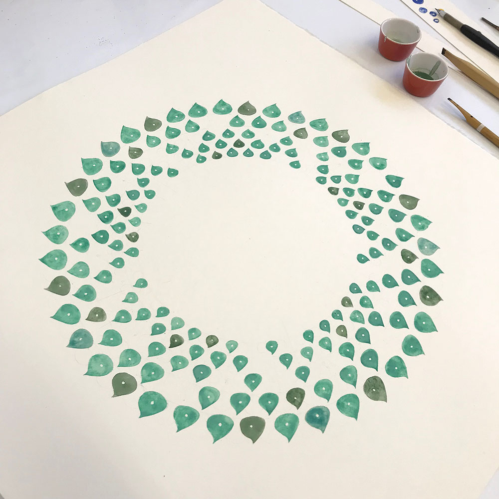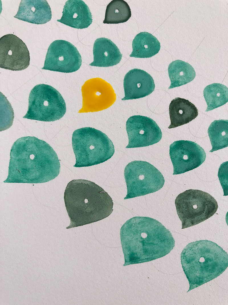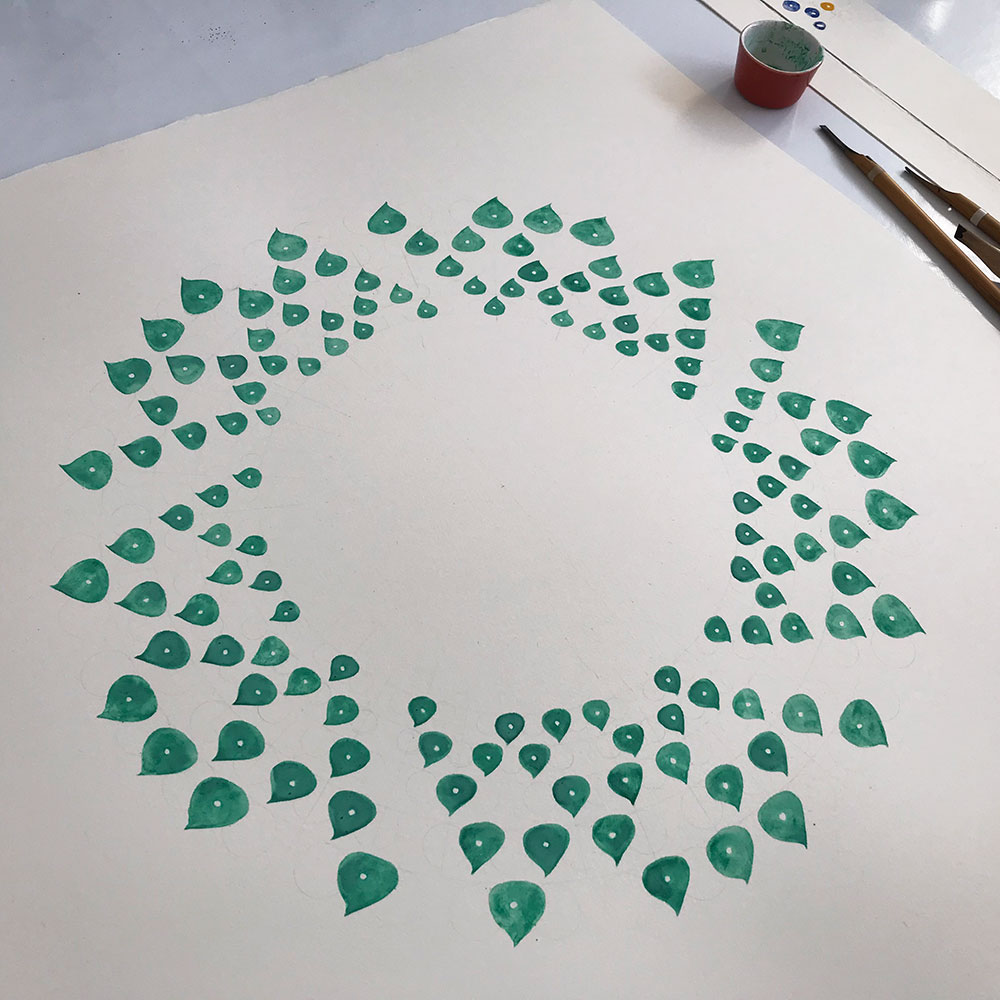 As the letter Mîm of my previous piece is associated with water, the letter Hâ ه that is the base of this one is associated with the breath. In the lunar order of the Arabic alphabet, which is phonetic (the letters matching the sounds exactly), Hâ is the innermost sound, a breath generated at the level of the heart. The other letters travel upwards and outwards, ending with the outermost sound W و .