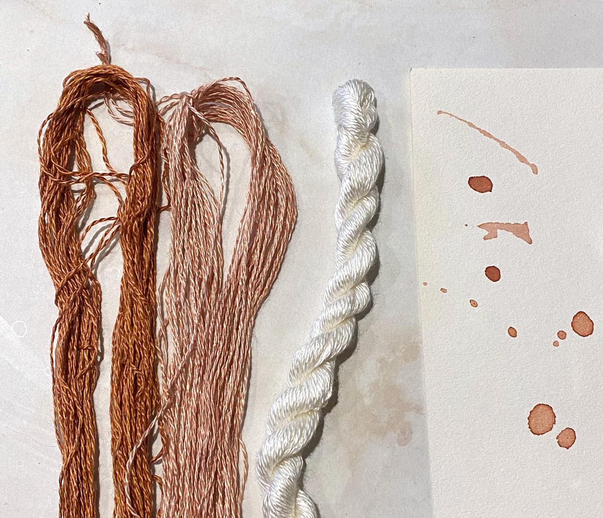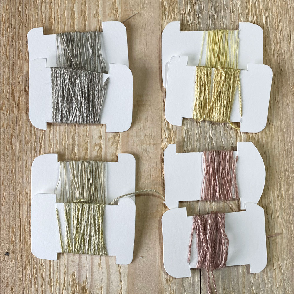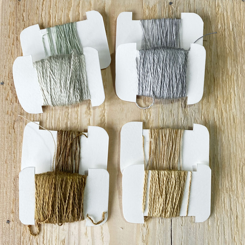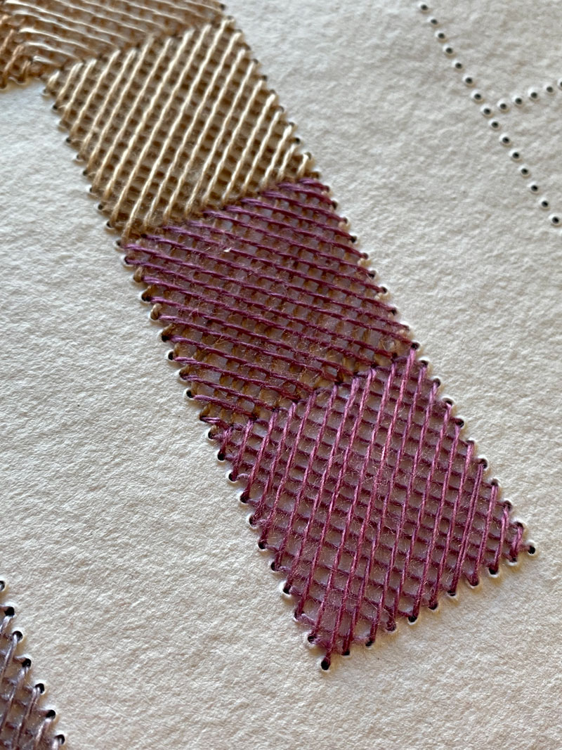Over several months, I used plant matter as it presented itself to me to dye threads of silk and linen, without expectation. I then stitched them on paper in the order I found them. Between the viewing angle and the glossy nature of the silk, the colours are ever-changing and can’t be pinned down. The overall composition is a double instance of Qubūl, which reflects the original Japanese concept to express my gratitude to the plants, but also to Life for what it has given me this past year.