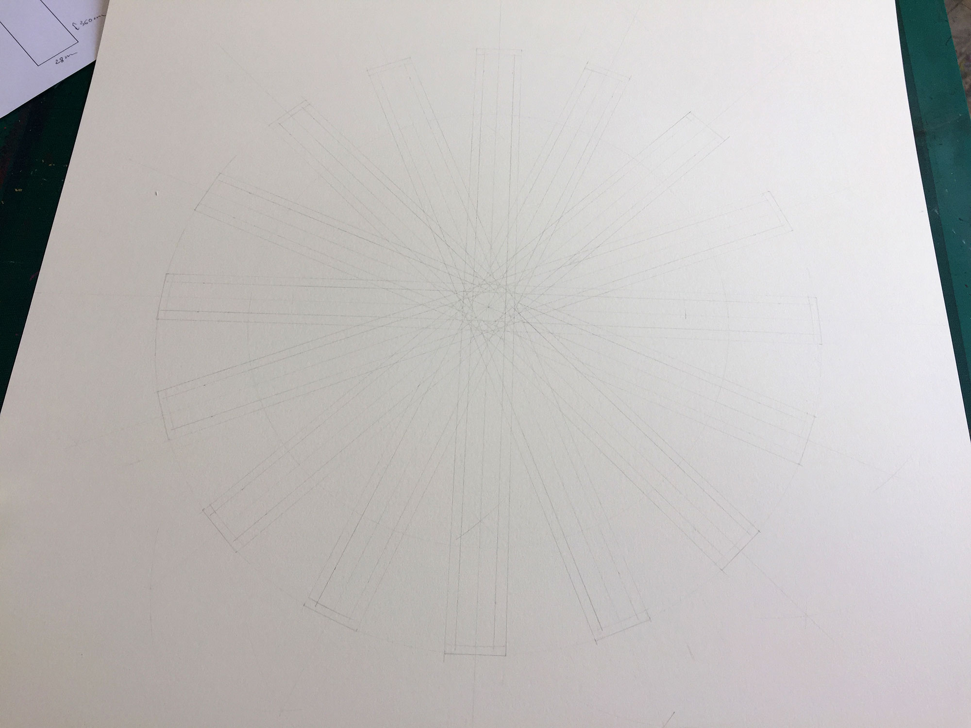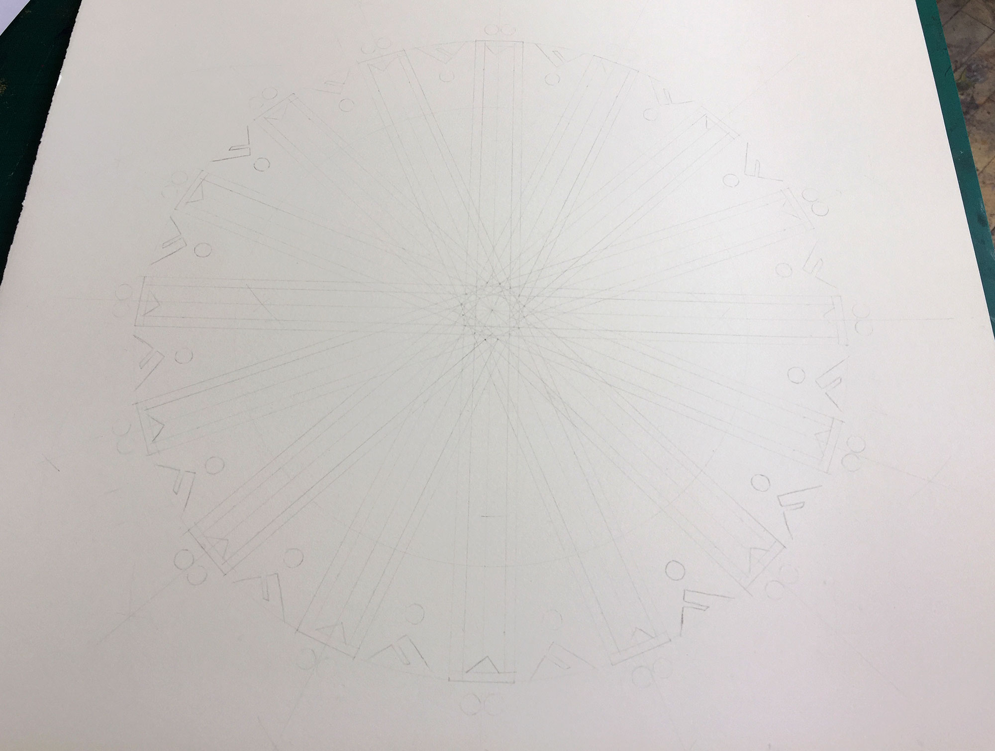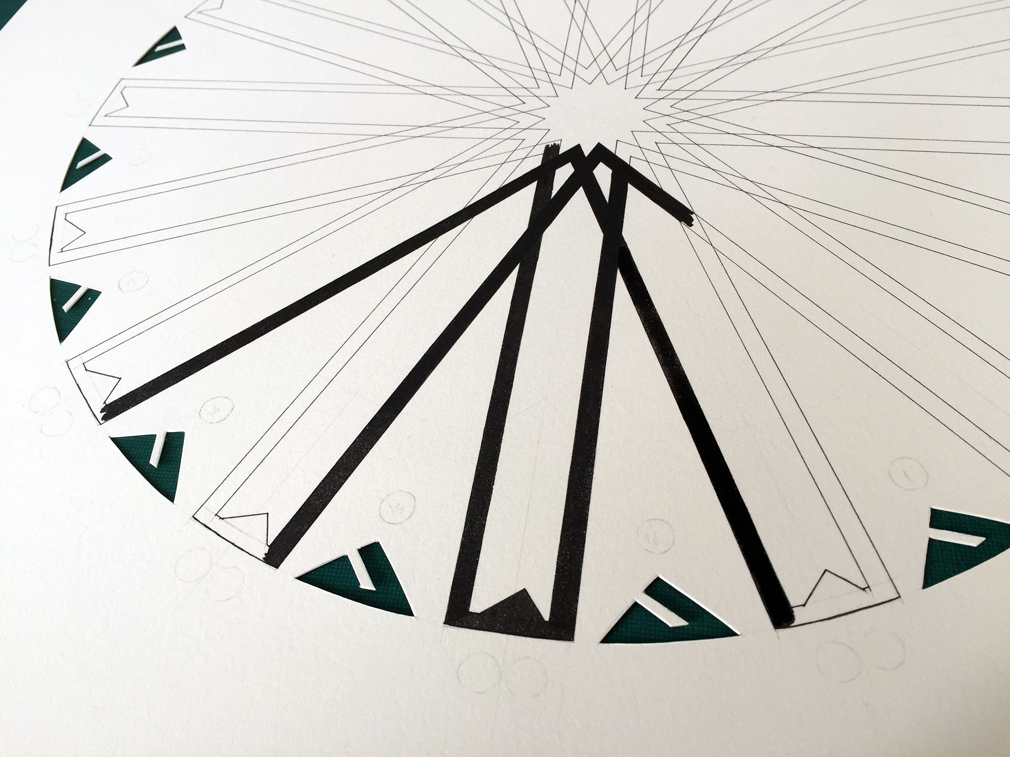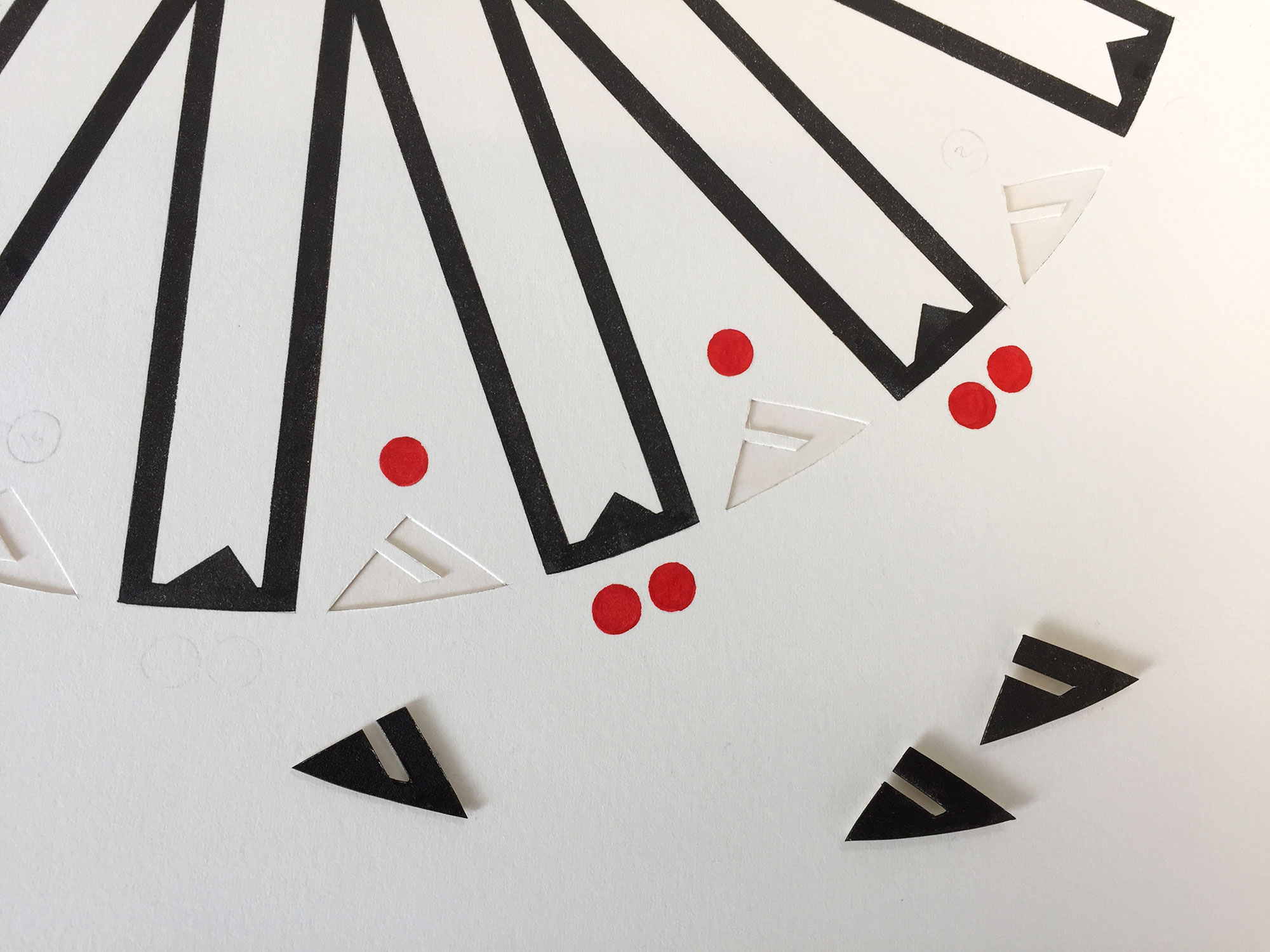 Refuge: Liyâdh evokes to me ships finding a safe harbor: this is expressed here with lost letters finding a space to moor – a space that is available and reserved for them (in simpler days, an empty space was always left at the table for the unexpected guest in need). The fragmented space of Flight has given way to the circle of wholeness. The previously threatening red now radiates at the heart of the composition like a warm sun or hearth fire.