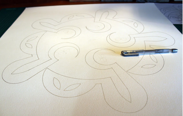 Hya (هي) is She or Her. Five, the number of the Feminine, is the basis of the design and runs through it: the composition is built on three circles of, respectively, 40 cm (5×8, number of completion), 25cm (5×5) and 15cm (5×3, also feminine). The circle, vesica piscis and lunar crescent share this association, while the whole arrangement looks like a flower. The crescents are “pregnant” with golden “seeds” of potential.