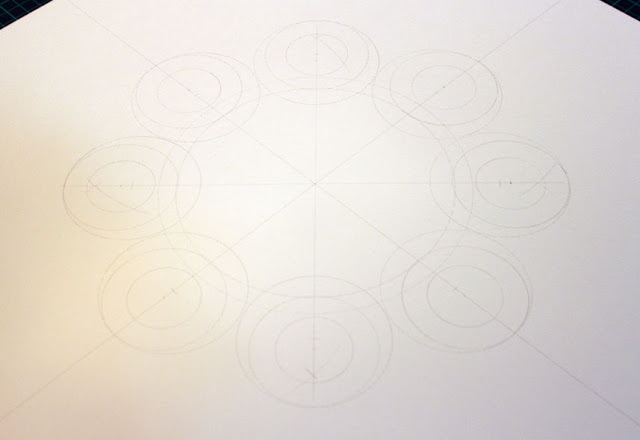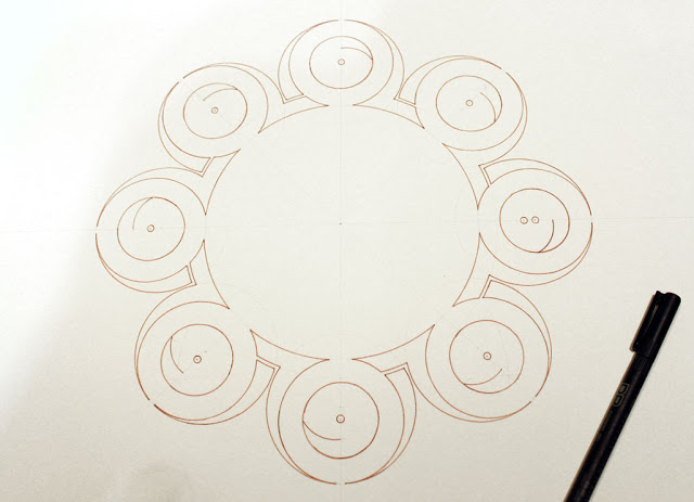Uncharacteristically, the image of the design came to me spontaneously, and from there it was a matter of finding out if it was possible to create it in the manner faithful both to the script and to geometry by which I work. The resulting “flower” brought to mind the above quote.