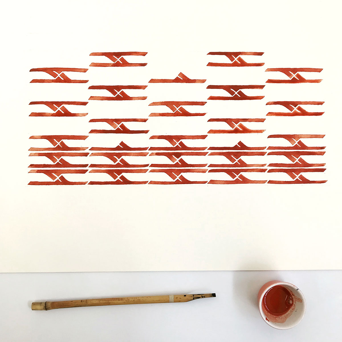 The first line of my favourite Hafiz poem imposed itself as a title for this piece, where the word Love حب, in Manuscript Kufic and five different earth pigments, forms a pattern of primal simplicity.