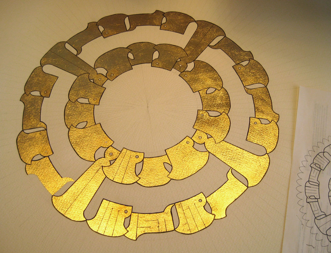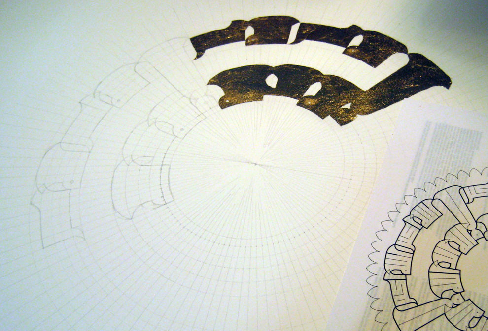 Here you can see a portion that’s penciled and another that’s already gilded. I worked in quarters because pencil smudges and I don’t like working over too much pencil.
